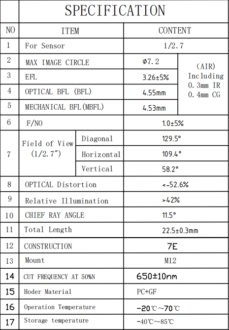 1/2.7"MAX IMAGE CIRCLE: