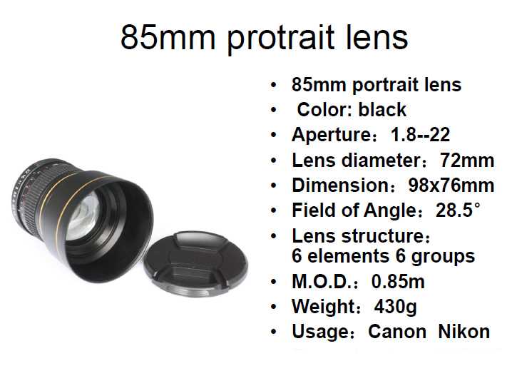 Thông số kỹ thuật ống kính Canon Nikon 85mm F1.8